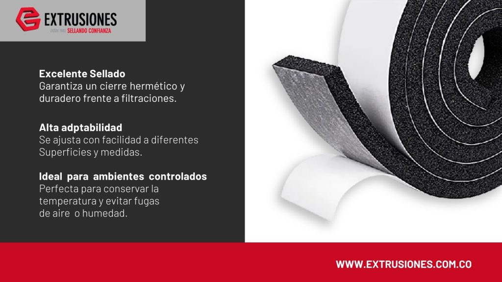 Estas propiedades hacen que las cintas y espumas en EPDM sean especialmente adecuadas para aplicaciones donde la eficiencia energética y la protección del contenido son prioritarias.
