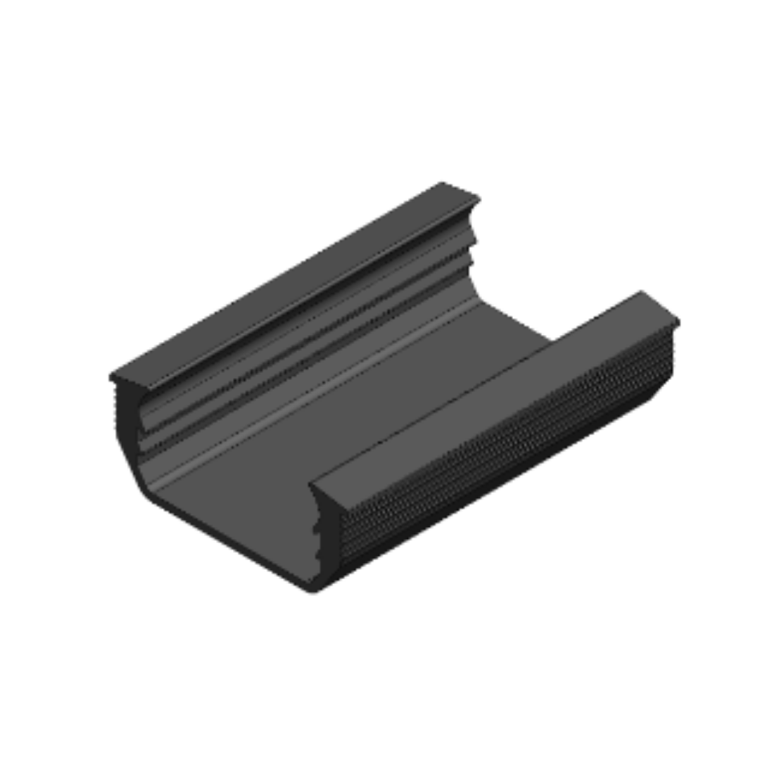 Empaque tipo U que proporciona soporte al vidrio, evitando el contacto directo con el aluminio.